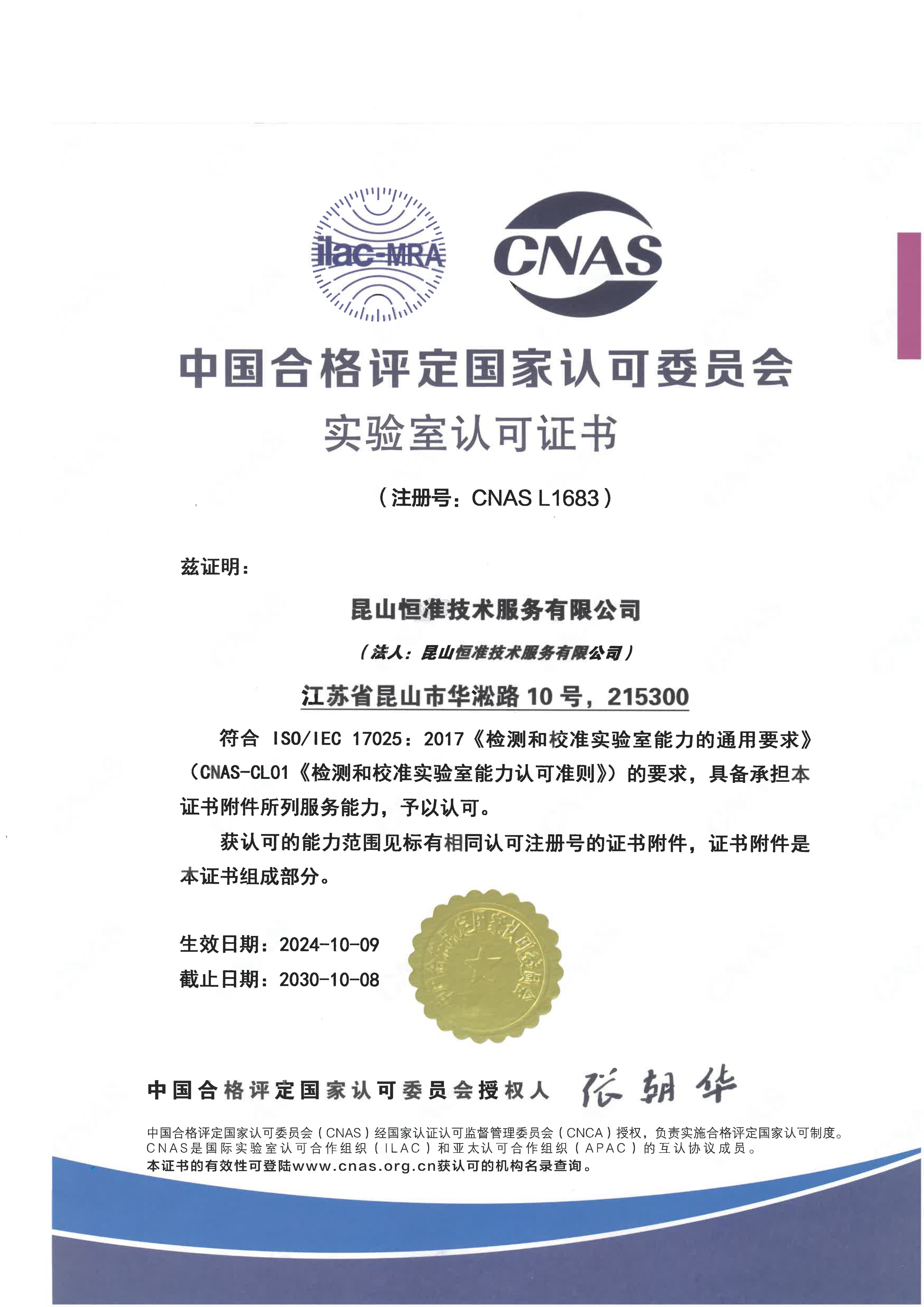 我司實(shí)驗(yàn)室為中國(guó)合格評(píng)定國(guó)家認(rèn)可委員會(huì)CNAS認(rèn)可實(shí)驗(yàn)室,校準(zhǔn)、檢測(cè)之管理技術(shù)均符合ISO/IEC 17025的要求,并承諾持續(xù)的改善管理體系和提升客戶滿意度。